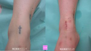 今回の症例は2個の刺青が足首近くにある症例です。